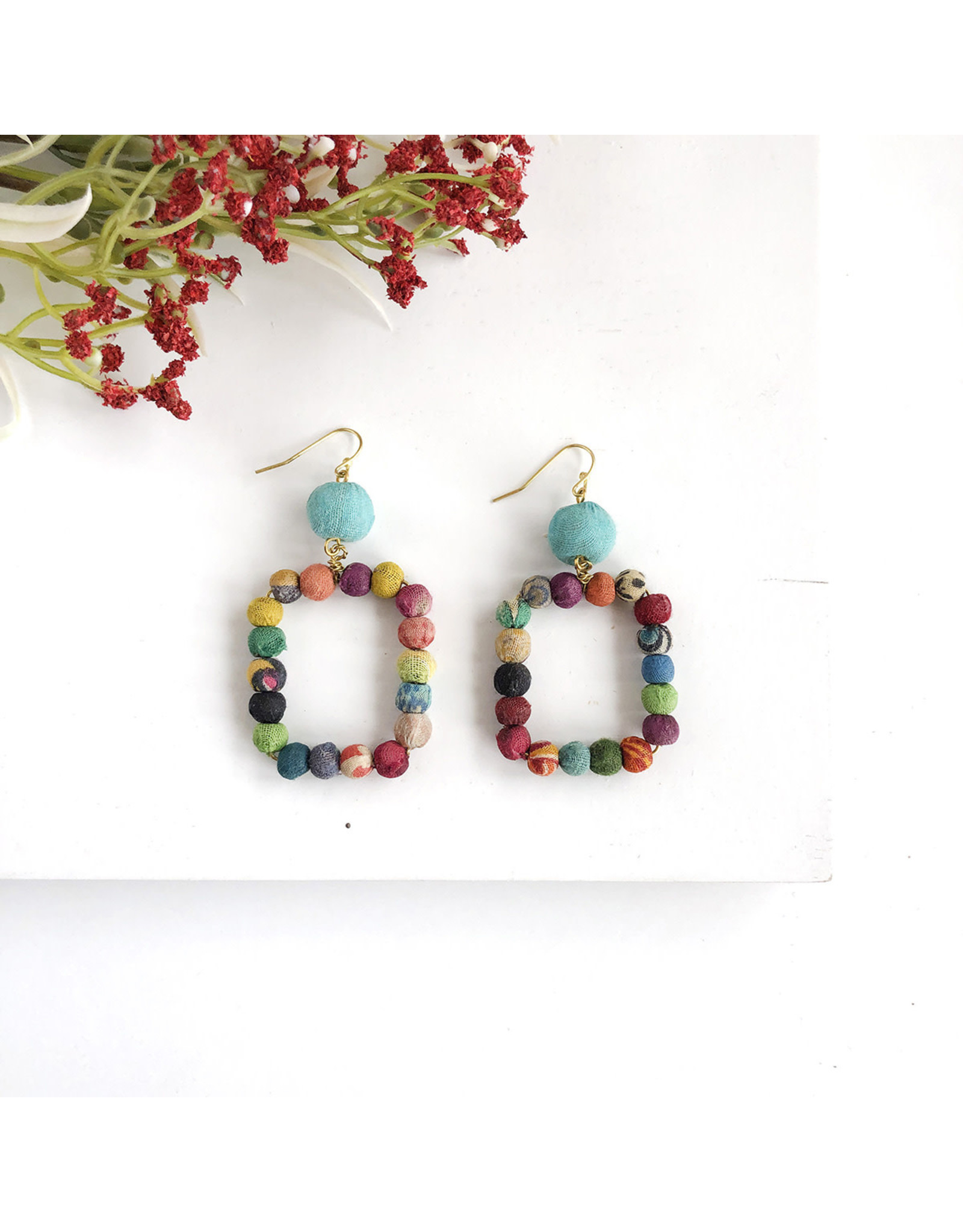 Adorable sari covered earrings. Make a statement with these light earrings, fair trade India