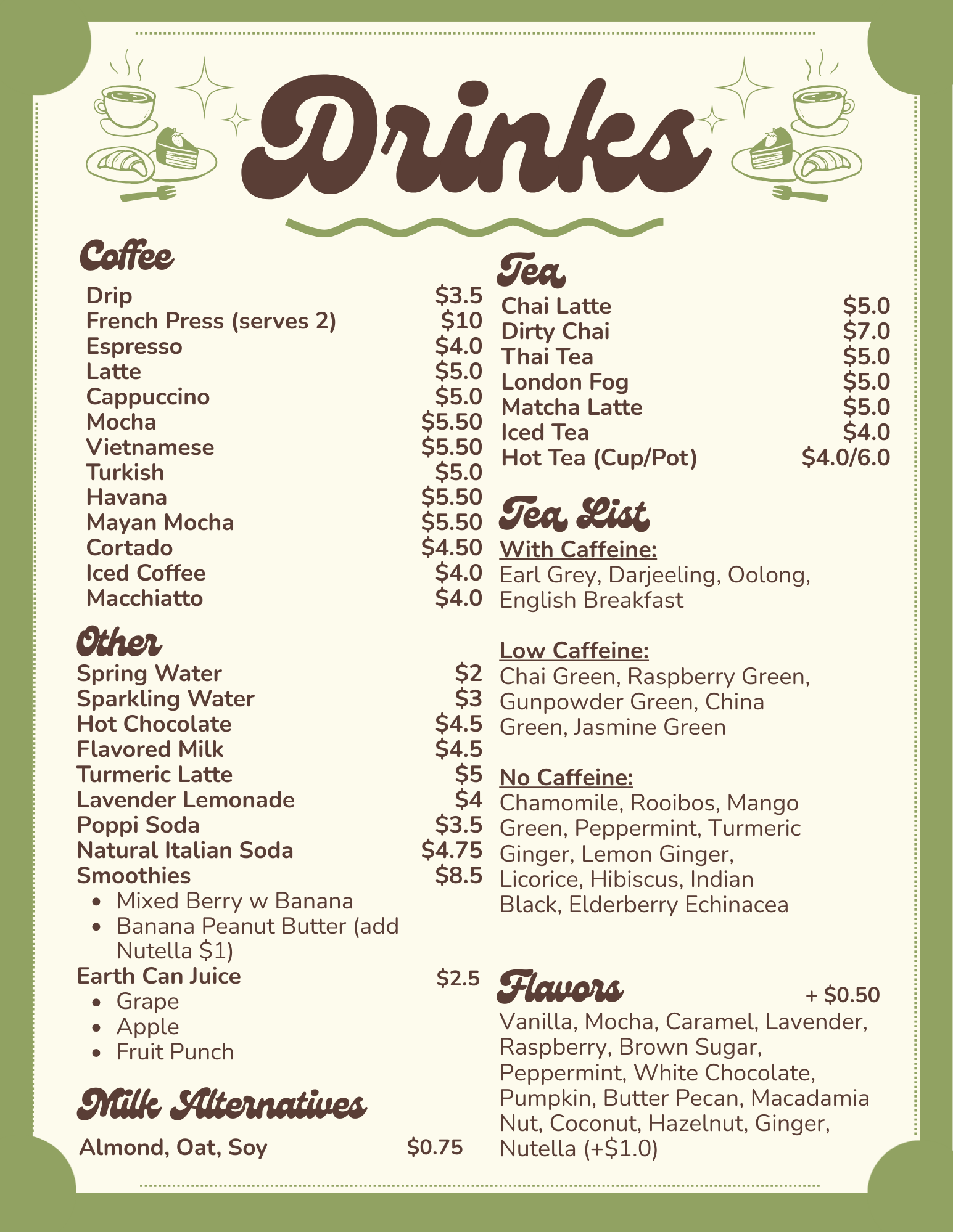 Coffee, Tea & Hot Chocolate