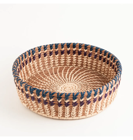 Perfect for storage or decor, the Dahlia basket is handwoven by artisans in Guatemala out of pajón, a native wild grass, and pine needles with colorful raffia accents.